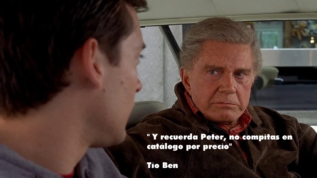 Imagen 2: Tío ben aconsejando a Peter Parker respecto a como manejarse en el catálogo de Mercado Libre. Editada por Gask